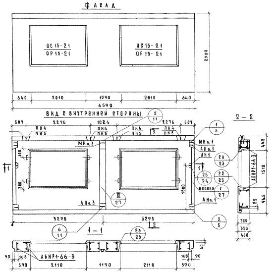 НР1-66.29.3-3 Наружная стеновая панель рядовая по Серии 1.132-1.